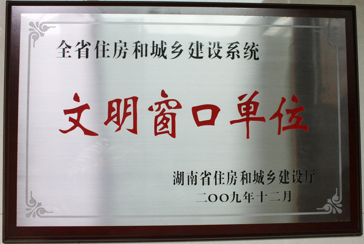 2009年12月被湖南省住房和城鄉(xiāng)建設廳評為“全省住房和城鄉(xiāng)建設系統(tǒng)文明窗口單位”